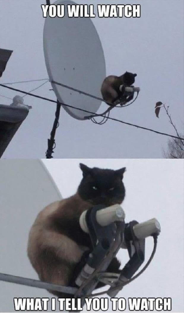 These are memes of cats being naughty doing the things they are famous for like wrecking things, getting under your feet, sitting in your things and knocking things over.