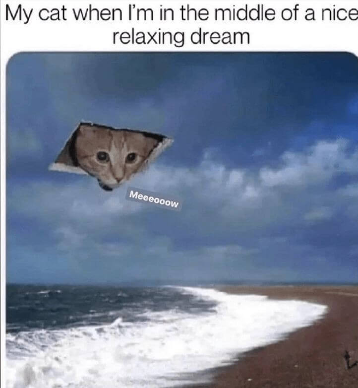 Flying Cat: A cat soaring through the air with the caption: “My cat when I’m in the middle of a nice relaxing dream.”