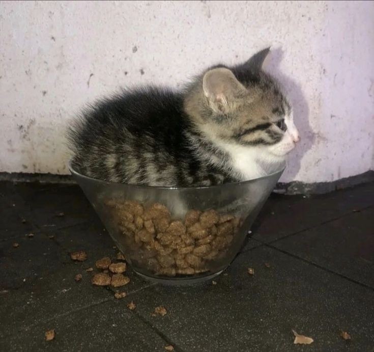 The Foodie Kitten Sitting in a bowl of cat food, this kitten looks both curious and playful. Its expression seems to say it’s trying to decide whether to eat or play. This fun image highlights the playful and unpredictable nature of kittens.